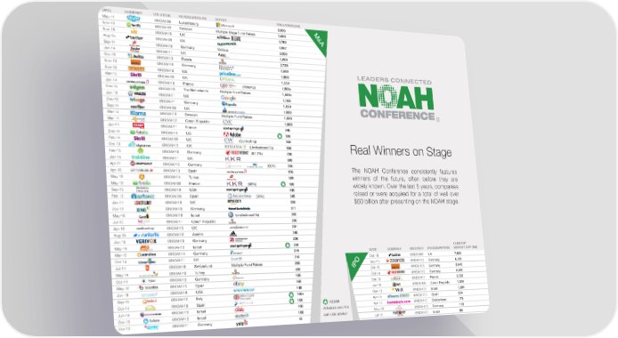 DATE COMPANY ON STAGE HEADQUARTERS BUYER VALUATION ($M) May-11 @NOAH09 Luxembourg 8,000 M Nov-13 @NOAH09 Sweden Multiple Mega Fund Raises 5,000 &A Nov-15 @NOAH15 UK 4,780 Aug-15 @NOAH09 UK 3,667 Sep-14 @NOAH16 Germany Various 3,000 Jan-14 @NOAH11 UK 2,800 Oct-15 @NOAH13 Russia 2,729 Nov-13 @NOAH16 Germany 2,500 Nov-12 @NOAH10 US 1,800 Mar-15 @NOAH09 UK 1,550 Jan-14 @NOAH10 France (Minority) 1,500+ Dec-14 @NOAH16 The Netherlands Multiple Fund Raises 1,500+ Jun-13 @NOAH11 US 1,100 Dec-12 @NOAH11 Germany 1,050 Sep-14 @NOAH09 UK 1,000 ® Mar-14 @NOAH13 Sweden Multiple Fund Raises 1,000 Mar-14 @NOAH12 Czech Republic 1,000 Jan-11 @NOAH11 France 846 Dec-14 @NOAH14 US 800 Feb-14 @NOAH09 UK (Controlling) 800 Oct-13 @NOAH12 UK (Undisclosed %) 800 Real Winners on Stage Feb-15 @NOAH15 Germany (51.7%) 706 Jan-15 @NOAH11 UK 680 Apr-11 @NOAH15 Germany (60%) 600 The NOAH Conference consistently features Apr-16 @NOAH13 Spain 570 May-15 @NOAH14 Turkey 589 winners of the future, often before they are May-12 @NOAH09 France (50%) 450 widely known. Over the last 5 years, companies Sep-15 @NOAH16 USA 440 raised or were acquired for a total of well over Feb-13 @NOAH09 Spain (30%) 345 Jan-11 @NOAH10 UK 320 $50 billion after presenting on the NOAH stage. Oct-12 @NOAH10 Germany 311 May-16 @NOAH16 Israei (undisclosed %) 300 Jul-12 @NOAH11 Czech Republic 250 Apr-16 @NOAH15 UK 241 Aug-15 @NOAH16 Austria 240 Jun-15 @NOAH15 Germany 236 May-14 @NOAH12 Israel 228 CURRENT Mar-15 @NOAH14 Germany 219 DATE COMPANY ON STAGE HEADQUARTERS MARKET CAP ($M) Oct-14 @NOAH11 UK 210 Oct-10 @NOAH09 UK 7,870 Jul-14 @NOAH16 Switzerland Multiple Fund Raises 200 IPO Sep-14 @NOAH16 Germany 6,783 May-14 @NOAH10 Turkey 200 Oct-15 @NOAH16 Germany 3,640 Oct-14 @NOAH12 Germany 190 Oct-14 @NOAH16 Germany 3,486 May-16 @NOAH15 Spain 166 Oct-13 @NOAH11 France 2,720 Jun-16 @NOAH16 USA 148 Jan-12 @NOAH09 Czech Republic 1,078 Sep-14 @NOAH12 Italy 100+ Nov-13 @NOAH12 Israel 1,394 Oct-14 @NOAH10 Spain 100 NOAH Apr-14 @NOAH13 Spain 224 Jun-14 @NOAH13 Israel 100 Advisors was the Apr-14 @NOAH12 Switzerland 178 Oct-13 @NOAH12 Israel 100 sell-side advisor May-15 @NOAH10 Germany 116 Oct-12 @NOAH11 Germany 50 Jul-14 @NOAH12 Israel 85