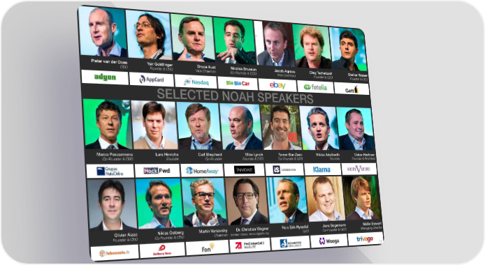 Pieter van der Does Yair Goldfinger Bruce Aust Nicolas Brusson Jacob Aqraou Oleg Tscheltzoff Shahar Waiser CEO Founder & CEO Vice Chairman Co-Founder & COO Vice Chairman Founder & CEO Founder & CEO SELECTED NOAH SPEAKERS Marco Pescarmona Lars Hinrichs Carl Shepherd Mike Lynch Tomer Bar-Zeev Niklas Adalberth Oskar Hartman Co-Founder & CEO Founder Co-Founder Founder & CEO Co-Founder & CEO Founder Founder & President Olivier Aizac Niklas Östberg Martin Varsavsky Dr. Christian Wegner Rolv Erik Ryssdal Jens Begemann Malte Siewert Founder & CEO Co-Founder & CEO Chairman Member of Exec. Board Digital & Adj. CEO Co-Founder & CEO Managing Director 25