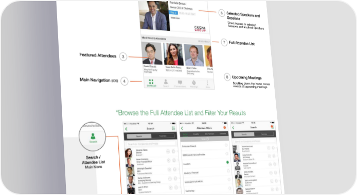 The NOAH Connect Dashboard Event Overview 1 5 Our Strategic Partners Full Program or 2 Register for Event 6 Selected Speakers and Sessions Direct Access to selected Sessions and involved Speakers 7 Full Attendee List Featured Attendees 3 8 Upcoming Meetings Main Navigation (iOS) 4 Scrolling down the home screen reveals all upcoming meetings “Browse the Full Attendee List and Filter Your Results Search / Attendee List Main Menu 3 Search / Attendee List 4 Apply Filters 5 Filter Result • On the general view, you can search • Here you can filter the current • From the results screen, you can by name & company attendee list by selecting one or mark interesting attendees as a • Press the “Filter” icon in the top right multiple parameters Lead to choose more specific criteria • Or directly start a Conversation or send a Meeting Request