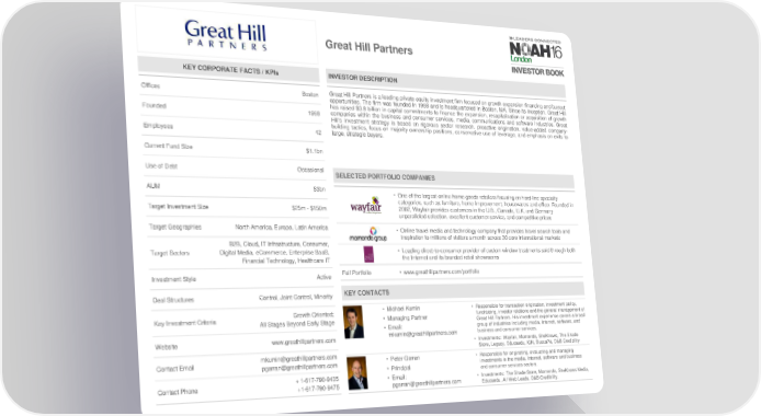 Great Hill Partners KEY CORPORATE FACTS / KPIs INVESTOR DESCRIPTION Offices Boston Great Hill Partners is a leading private equity investment firm focused on growth expansion financing and buyout opportunities. The firm was founded in 1998 and is headquartered in Boston, MA. Since its inception, Great Hill has raised $3.8 billion in capital commitments to finance the expansion, recapitalization or acquisition of growth Founded 1998 companies within the business and consumer services, media, communications and software industries. Great Hill's investment strategy is based on rigorous sector research, proactive origination, value-added company- building tactics, focus on majority ownership positions, conservative use of leverage, and emphasis on exits to Employees 42 large, strategic buyers. Current Fund Size $1.1bn Use of Debt Occasional SELECTED PORTFOLIO COMPANIES AUM $3bn • One of the largest online home goods retailers focusing on hard-line specialty categories, such as furniture, home improvement, housewares and office. Founded in Target Investment Size $25m - $150m 2002, Wayfair provides customers in the U.S., Canada, U.K. and Germany unparalleled selection, excellent customer service, and competitive prices Target Geographies North America, Europe, Latin America • Online travel media and technology company that provides travel search tools and inspiration to millions of visitors a month across 30 core international markets B2B, Cloud, IT Infrastructure, Consumer, Target Sectors Digital Media, eCommerce, Enterprise SaaS, • Leading direct-to-consumer provider of custom window treatments sold through both Financial Technology, Healthcare IT the Internet and its branded retail showrooms Investment Style Active Full Portfolio • www.greathillpartners.com/portfolio Deal Structures Control, Joint Control, Minority KEY CONTACTS Growth Oriented; • Michael Kumin • Responsible for transaction origination, investment policy, Key Investment Criteria • Managing Partner fundraising, investor relations and the general management of All Stages Beyond Early Stage Great Hill Partners. His investment experience covers a broad • Email: group of industries including media, Internet, software, and Website www.greathillpartners.com [email protected] business and consumer services. • Investments: Wayfair, Momondo, SheKnows, The Shade Store, Legacy, Educaedu, IGN, BuscaPé, D&B Credibility Contact Email [email protected] • Peter Garran • Responsible for originating, evaluating and managing [email protected] • Principal investments in the media, Internet, software and business + 1-617-790-9435 and consumer services sectors. Contact Phone • Email: • Investments: The Shade Store, Momondo, SheKnows Media, +1-617-790-9475 [email protected] Educaedu, All Web Leads, D&B Credibility.