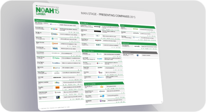MAIN STAGE - PRESENTING COMPANIES 2015 Marketplaces New Media Travel Moni Milchman - Chairman, Hospital rating site and search engine Andreas Wiele - President One of the largest digital publishing houses Çaglar Erol Comparison site for travel and finance Founder & CEO Marketing & Classified Ad Models in Europe Founder & CEO E: 20 E: 14,000 | Rev 2014: $3.3bn | EV: $5.8bn E: ~100 | CR: $0.5m Nicolas Brusson World’s largest long-distance ridesharing Jochen Krisch Business intelligence platform for Greg Marsh Upscale city accommodation COO & Co-Founder community Editor ecommerce CEO E: 300 | EV: $1.2bn E: ~200 | CR: $81m Tim Stracke Internet marketplace for luxury watches Joey Levin Media company with 150+ brands Glenn Fogel Travel-related deal search technology Co-CEO CEO Head of Worldwide Strategy E: 50 | CR: $23m E: ~5,000 | Rev 2014: $3.1bn | EV: $5.6bn E: ~13,000 | Rev 2014: $8.4bn | EV: $66.4bn William Shu Delivery platform for restaurant meals Daniel Treisman International online news website Co-Founder & CEO Editor-In-Chief E: 250 | EV: $315m E: ~50 Workspace Mauro Giacobbe Leading insurance aggregator in Italy Efe Cakarel Curated online cinema and community Miguel McKelvey Space, community and services for business CEO Founder & CEO Co-Founder & CCO E: 440 | Rev 2014: $41m E: ~50 | CR: $25m E: 250 | Rev 2014: $150m | EV: $10bn Rune Sovndahl Multiple property services website Co-Founder & CEO E: ~250 SaaS & Big Data Government Navid Hadzaad Virtual assistant provider Oren Kaniel Mobile advertising measurement platform Isidro Laso - Head of Sector - Founder & CEO Co-Founder & CEO Startup Europe European Commission E: ~50 | CR: $8m E: 80 | CR: $27m Philip Huffmann Online marketplace for household services Lars Trieloff SaaS provider for predictive applications in Co-Founder Director Product Management the European market E: 250 | CR: $62m E: 150 Silvio Pagliani Network of property portal websites in Italy Ran Sarig SaaS-based big data platform for Co-Founder Co-Founder & CEO advertisers E: ~100 | CR: $18m Mario Kohle B2B marketplace platform Ragnar Sass CRM software provider CEO Co-Founder E: ~50 E: 100 | CR: $13m Fabian Siegel Ingredients and recipes delivery service Pere Valles Electronic voting solutions Co-Founder & CEO CEO CR: $10m E: ~150 | Rev 2013: $71m | CR: $113m Herve Hatt Broker and financial advisor Andreas Koenig Software packages for remote CEO CEO administration E: 350 | Rev 2014: $62m Lawrence Leuschner Online trading systems for used electronics CEO E: 400 | Rev 2013: $55m | CR: $11m Social & Games Greg Ellis Digital marketplaces and lead generation Riccardo Zacconi CEO CEO Social games developer E: 1,000 | Rev 2014: $383m | EV: $2bn E: 1,400 | Rev 2014: $2.2bn | EV: $3.7bn Ander Michelena Secondary ticketing marketplace Branko Milutinovic Founder & CEO Founder & CEO Mobile and web game developer E: 350 | Rev 2014: $54m | CR: $26m E: 160 Peter F. Schmid Supplier search engine for B2B products Shaul Olmert CEO Founder & CEO Content publishing platform E: ~200 | Rev 2014: $50m E: 100 | CR: $20m Jan Miczaika Free-to-play mobile games developer CMO E: 250 | CR: $32m E – Employees / Rev - Revenues / CR – Capital Raised / FS - Funds 20