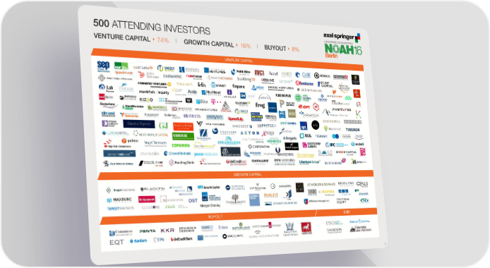 NOAH 2016 London Overview Page 8 Page 10500 ATTENDING INVESTORS VENTURE CAPITAL 74% GROWTH CAPITAL 16% BUYOUT 8% VENTURE CAPITAL eventures GROWTH CAPITAL BUYOUT DEBT 8