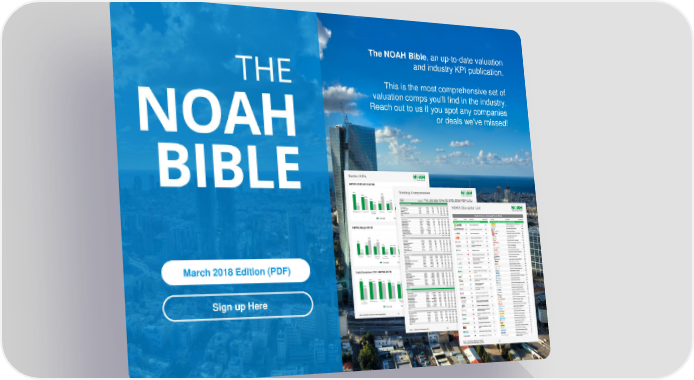 The NOAH Bible, an up-to-date valuation and industry KPI publication. This is the most comprehensive set of valuation comps you'll find in the industry. Reach out to us if you spot any companies or deals we've missed! March 2018 Edition (PDF) Sign up Here 5