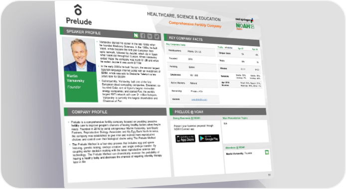 HEALTHCARE, SCIENCE & EDUCATION ComprehensiveFertility Company SPEAKER PROFILE KEY COMPANY FACTS • Varsavsky started his career in the late 1980s when Key Corporate Facts Traffic Apr-17 Apr-18 he founded Medicorp Sciences. In the 1990s, he built Headquarters Atlanta, GA, US Unique Users 15k <5k Viatel, which became the first pan-European fiber optic network, followed by Jazztel, which did in Spain what Viatel did throughout Europe. When Varsavsky Founded 2016 Visits 69k 8k exited Viatel the company was worth $1.2B and when he exited Jazztel it was worth $770M Funding $200m Minutes 01:11 01:01 • In the early 2000s he built Ya.com, the second largest Spanish-language internet portal with an investment of Mobile: 93% Mobile: 56% $28M, which was sold to Deutsche Telekom a few Employees 100-1,000 Sessions Desktop: 7% Desktop: 44% years later for $650M Martin Apr 2018 Direct: 24%, Search: 51%, • Subsequently, Varsavsky built one of the first Active Markets National Varsavsky European cloud computing companies, Einsteinet; co- Sources Referrals: 24%, Other: 1% Founder founded Eolia, one of Spain's largest renewable Ownership Private – VCs energy companies; and started Fon, the world's largest WiFi network with over 21 million hotspots. Varsavsky is currently the largest shareholder and Chairman of Fon Website preludefertility.com COMPANY PROFILE PRELUDE @ NOAH Doing Business @ NOAH Main Presentation Topics • Prelude is a comprehensive fertility company focused on providing proactive N/A fertility care to improve people’s chances of having healthy babies when they’re Present your business proposal through ready. Founded in 2016 by serial entrepreneur Martín Varsavsky, Lee Equity NOAH Connect app Partners, Reproductive Biology Associates and My Egg Bank North America, the company was established to give men and women more reproductive choices and control over their biological clocks using The Prelude Method • The Prelude Method is a four-step process that includes egg and sperm freezing, genetic testing, embryo creation, and single embryo transfer. By coupling earlier decision making with the latest reproductive science and technology, The Prelude Method can dramatically increase the probability of Attendees @ NOAH having a healthy baby and decrease the chances of requiring infertility therapy Martin Varsavsky, Founder later in life 91