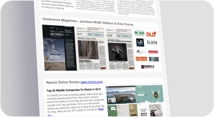 NOAH Berlin Conference Newsletter Page 26 Page 28Informilo - Where Business Meets InnovationJennifer L. Schenker - InformiloBen Rooney - InformiloInformilo - Where Business Meets Innovation