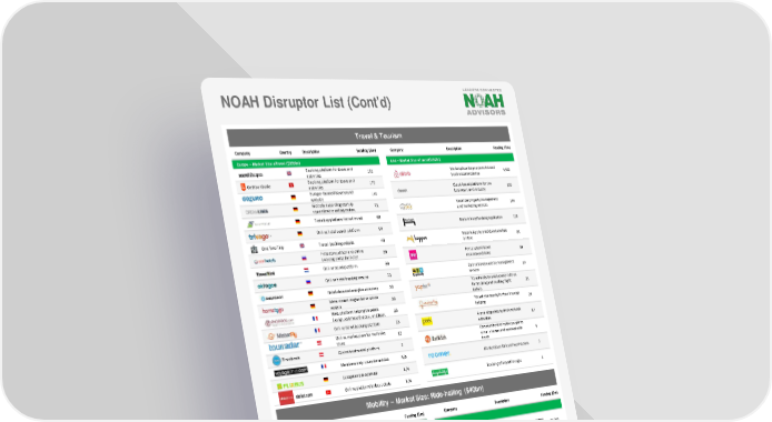 NOAH Disruptor List (Cont'd) Travel & Tourism Company Country Description Funding ($m) Company Description Funding ($m) Europe – Market Size: eTravel ($193bn) USA –Market Size:eTravel ($192bn) Booking platform for tours and 181 Marketplace for people to list and activities book accommodation 4,400 GetYourGuide Booking platform for tours and 170 activities Cloud-based platform for the Europe-focused travel search 146 business travel industry 539 website Globally expanding startup 73 Vacation property management 144 specialized in selling cruises and marketing services Ticketing platform for rail travel 69 Mobile hotel booking application 118 * Online hotel search platform 54 One Two Trip Travel booking website 48 Mobile App to predict and analyze 84 airfare Price comparison and online 39 booking portal for hotel Personalized travel 39 Online travel platform 39 recommendations Online hotel booking service 33 Online travel expense management 27 service Hotel data and analytics company 30 Travel website and browser add-on Meta-search engine for vacation for tracking and booking flight 25 30 tickets rentals Travel community for free housing Web platform helping travelers 28 lodging 24 design, estimate the cost, and book Online travel booking platform 23 A one-stop shop to find and book 17 Online marketplace for multi-day activities tours 17 Community that invites people to Zizooboats Global boat rental platform 3 dine in homes and connect with 8 hosts Members only luxury travel club N/A Marketplace for hotel reservations 7 European bus operator N/A obilet.com Online platform for bus tickets N/A Booking of airport lounges 4 Mobility – Market Size: Ride-hailing ($40bn) Company Country Description Funding ($m) Company Description Funding ($m) Europe USA Mobile app for booking taxis and 613 limos Mobile app connecting passengers 22,200 Online cab service that enables with drivers for hire users to book vehicles and 407 chauffeurs Transportation network company 4,110 Car-sharing website that connects drivers with empty seats and 335 paying passengers Mobile app that enables users to Urban logistics and delivery 278 track information on public 132 platform transport On-demand taxi hailing services for 83 Real-time traffic data and traffic licensed professional drivers speed 143 Urban transport app 50 Peer-to-peer car sharing marketplace that enables car 103 Peer-to-Peer car rental platform in 43 owners to rent out their cars France Peer-to-peer car renting platform Peer-to-Peer car sharing 172 for travelers at airports and train 22 marketplace stations Online rental platform for 19 Service that sends valets to park 76 motorhomes and campervans the carwherever itis the position Peer-to-peer car rental 18 Car rental platform that tackles queues and paperwork 60 Smartphone app enabling users to arrange carpools with the 14 community Solution to manage vehicle parking 54 App connecting users to taxi drivers 13 through new sensing technologies Cab services with flexible booking Mobile app that allows users to hail options via a mobile app and the 11 a cab, track a ride, and make 39 web payments Source: Crunchbase, Statista, Pwc (2016), Reuters. 38 * The company went public after July 2014