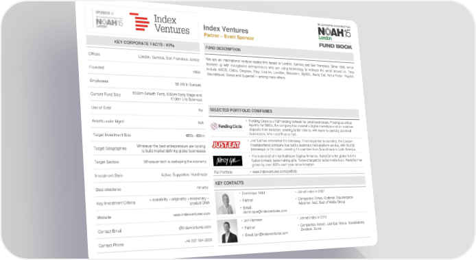 Index Ventures Partner – Event Sponsor KEY CORPORATE FACTS / KPIs FUND DESCRIPTION Offices London, Geneva, San Francisco, Jersey Weare an international venture capital firm based in London, Geneva and San Francisco. Since 1996, we’ve teamed up with exceptional entrepreneurs who are using technology to reshape the world around us. They Founded 1996 include ASOS, Criteo, Dropbox, Etsy, Last.fm, Lovefilm, Moleskine, MySQL, Nasty Gal, Net-a-Porter, Playfish, Soundcloud, Sonos and Supercell -- among many others. Employees 58 (49 in Europe) Current Fund Size €500mGrowthFund, €350m Early Stage and €150m Life Sciences Use of Debt No SELECTED PORTFOLIO COMPANIES Assets under Mgmt N/A • Funding Circle is a P2P lending network for small businesses. Freeing up critical liquidity for SMEs, the company has created a digital marketplace which matches deposits from investors, seeking better returns, with loans to carefully screened Target Investment Size €50k - €50m businesses, who need finance fast. • Just Eat has reinvented the takeaway. From keystroke to doorstep, the London- Wherever the best entrepreneurs are looking headquartered company has built a seamless multi-platform service, with 34,000 Target Geographies to build market defining global businesses takeaways on its roster, covering 14 countries from Scandinavia to Latin America. • The brainchild of e-tail trailblazer Sophia Amoruso, NastyGal is the global hub for Target Sectors Wherever tech is reshaping the economy fasion-forward, taste-making girls. Turbo-charged by social media buzz, NastyGal has grown by over 500% each year since inception. Investment Style Active, Supportive, Handmade Full Portfolio • www.indexventures.com/portfolio Deal structures minority KEY CONTACTS + scalability + originality + missionary + • Dominique Vidal • Joined Index in 2007 Key Investment Criteria product DNA • Partner • Companies: Criteo, Outbrain, Squarespace, • Email: Adconion, be2, Best of Media Group Website www.indexventures.com [email protected] • Jan Hammer • Joined Index in 2010 Contact Email @indexventures.com • Partner • Companies: Adyen, Just-Eat, Novus, Socialbakers, • Email: [email protected] Zendesk, Zuora Contact Phone +44 207 154 2020