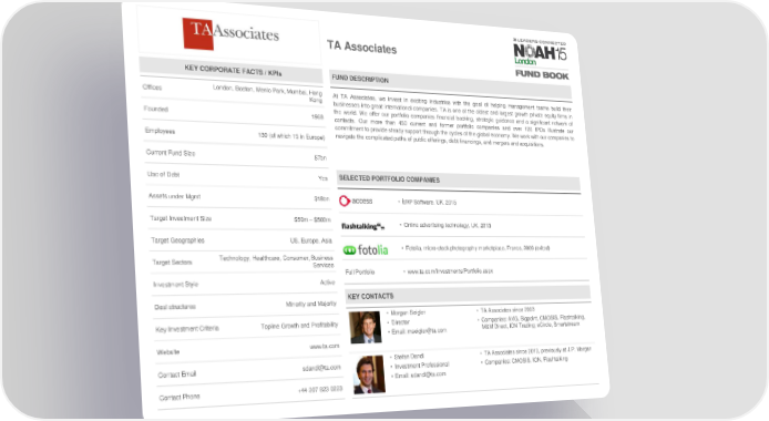 TA Associates KEY CORPORATE FACTS / KPIs FUND DESCRIPTION Offices London, Boston, Menlo Park, Mumbai, Hong At TA Associates, we invest in exciting industries with the goal of helping management teams build their Kong businesses into great international companies. TA is one of the oldest and largest growth private equity firms in Founded 1968 the world. We offer our portfolio companies financial backing, strategic guidance and a significant network of contacts. Our more than 450 current and former portfolio companies and over 120 IPOs illustrate our commitment to provide steady support through the cycles of the global economy. We work with our companies to Employees 130 (of which 15 in Europe) navigate the complicated paths of public offerings, debt financings, and mergers and acquisitions. Current Fund Size $7bn Use of Debt Yes SELECTED PORTFOLIO COMPANIES Assets under Mgmt $18bn • ERP Software, UK, 2015 Target Investment Size $50m – $500m • Online advertising technology, UK, 2013 Target Geographies US,Europe, Asia • Fotolia, micro-stock photography marketplace, France, 2009 (exited) Target Sectors Technology, Healthcare, Consumer, Business Services Full Portfolio • www.ta.com/Investments/Portfolio.aspx Investment Style Active Deal structures Minority and Majority KEY CONTACTS • Morgan Seigler • TA Associates since 2003 Key Investment Criteria Topline Growth and Profitability • Director • Companies: AVG, Bigpoint, CMOSIS, Flashtalking, • Email: [email protected] M&M Direct, ION Trading; eCircle, Smartstream Website www.ta.com • Stefan Dandl • TA Associates since 2013, previously at J.P. Morgan Contact Email [email protected] • Investment Professional • Companies: CMOSIS, ION, Flashtalking • Email: [email protected] Contact Phone +44207 823 0223