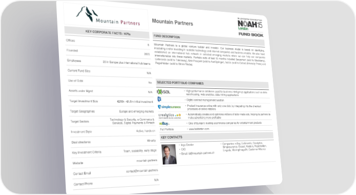 Mountain Partners KEY CORPORATE FACTS / KPIs FUND DESCRIPTION Offices 6 Mountain Partners is a global venture builder and investor. Our business model is based on identifying, incubating and/or investing in scalable technology and internet companies and business models. We also have Founded 2005 established an international hub network in selected emerging markets where we can help our companies internationalise into these markets. Portfolio exits of last 18 months included Secusmart (sold to Blackberry), Lieferando (sold to Takeaway), MeinProspekt (sold to AxelSpringer), bab.la (sold to Oxford University Press) and Employees 20 in Europe plus international hub teams RegioHelden (sold to Ströer Media). Current Fund Size N/A Use of Debt No SELECTED PORTFOLIO COMPANIES Assets under Mgmt N/A • High-performance database used for business intelligence applications such as data warehousing, web analytics, data mining applications Target Investment Size €250k –€1.5m initial investment • Digital contract management solution • Product insurance online with only one click, by integrating into the checkout Target Geographies Europe and emerging markets processes of online retailers • Automatically creates and optimizes millions of tailor-made ads, helping its partners to Technology & Security, e-Commerce & make advertising more profitable Target Sectors Services, Digital Payments & Fintech • One of Europe’s leading ecommerce companies for entertainment products Investment Style Active, hands-on Full Portfolio • www.balderton.com Deal structures Minority KEY CONTACTS • Ingo Drexler • Companies: reBuy, Lieferando, Crealytics, Key Investment Criteria Team, scalability, early stage • CIO Simplesurance, Exasol, Volders, Regiohelden, • Email: [email protected] Lingoda, MovingImage24, Customer Alliance Website mountain.partners Contact Email [email protected] Contact Phone N/A