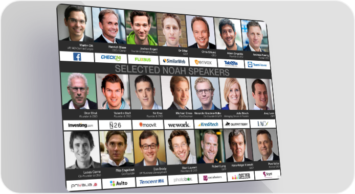 Martin Ott Henrich Blase Jochen Engert Or Offer Chris Ohlund Adam Singolda Andreas Koenig VP, MD Central Europe CEO / Owner Founder & Managing Director CEO CEO Founder & CEO Former CEO SELECTED NOAH SPEAKERS Dror Efrat Valentin Stalf Nir Erez Michael Gross Alexander Graubner-Müller Julia Bösch Joey Levin Founder & CEO Founder & CEO Founder & CEO Vice Chairman Co-Founder & CEO Managing Director & Founder CEO Filip Engelbert Hans-Holger Albrecht Lucas Carne Dan Brody Robert Lang Pere Vallès Stan Laurent Co-Founder & CEO Co-Founder VP Business Development President & CEO CEO CEO Former CEO 32
