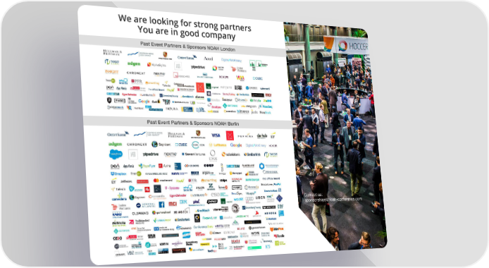 NOAH18 Conference Overview Page 24 Page 26We are looking for strong partners You are in good company Past Event Partners & Sponsors NOAH London Past Event Partners & Sponsors NOAH Berlin Contact us: [email protected] 25