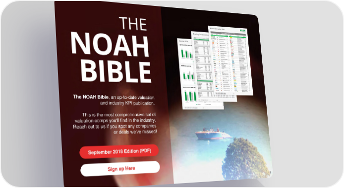 The NOAH Bible, an up-to-date valuation and industry KPI publication. This is the most comprehensive set of valuation comps you'll find in the industry. Reach out to us if you spot any companies or deals we've missed! September2018 Edition(PDF) Signup Here 44