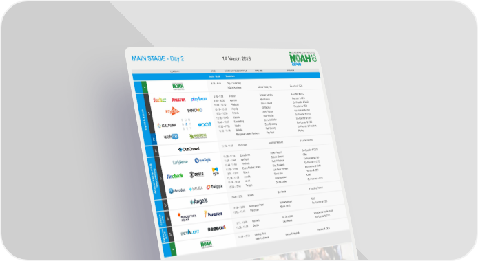 MAIN STAGE - Day 2 14 March 2018 COMPANY TIME COMPANY / SESSION TITLE SPEAKER POSITION 9:00 - 10:00 Breakfast 9:30 - 9:40 Day 1 Summary K NOAH Advisors Marco Rodzynek Founder & CEO ® 9:40 - 9:50 Feelter Smadar Landau Founder & CEO 9:50 - 10:00 Apester Moti Cohen Founder & CEO 10:00 - 10:10 Playbuzz Shaul Olmert Co-Founder & CEO CP 10:10 - 10:20 Anyclip Gil Becker President & CEO & Adtech 10:20 - 10:30 Innovid Zvika Netter Co-Founder & CEO 10:30 - 10:40 Kaltura Ron Yekutiel Co-Founder & CEO Digital 10:40 - 10:50 SundaySky Shmulik Weller Co-Founder & CEO 10:50 - 11:00 Wochit Dror Ginzberg Co-Founder & CEO 11:00 - 11:10 WalkMe Rafi Sweary Co-Founder & President FC Mangrove Capital Partners Roy Saar Partner CP 11:10 - 11:20 OurCrowd Jonathan Medved Founder & CEO 11:20 - 11:30 EarlySense Avner Halperin Co-Founder & CEO 11:30 - 11:40 eyeSight Gideon Shmuel CEO 11:40 - 11:50 Fincheck Ruth Polachek Co-Founder & CEO CP 11:50 - 12:00 Zebra Medical Vision Elad Benjamin Co-Founder & CEO 12:00 - 12:10 Syte.ai Lihi Pinto Fryman Co-Founder & CMO Deep Learning 12:10 - 12:20 Anodot David Drai Founder & CEO Artificial Intelligence & 12:20 - 12:30 Neura Amit Hammer CEO 12:30 - 12:40 Twiggle Dr. Adi Avidor Co-Founder & CTO CP 12:40 - 12:50 iAngels Mor Assia Founding Partner - CP 12:50 - 13:00 Perception Point Yoram Salinger CEO Cybersecurity 13:00 - 13:10 Panorays Matan Or-el Co-Founder & CEO CP 13:10 - 13:20 GetAlert Gil Davidman President & Co-Founder Hardware & IoT 13:20 - 13:30 Seebo Lior Akavia Co-Founder & CEO K 13:30 - 13:40 Closing Note ® NOAH Advisors Marco Rodzynek Founder & CEO NETWORKING Lunch served between 12:30 - 14:30 CP Company Presentation K Keynote FC Fireside Chat MR Interview / Panel with participation of Marco Rodzynek Founder & CEO, NOAH Advisors 11
