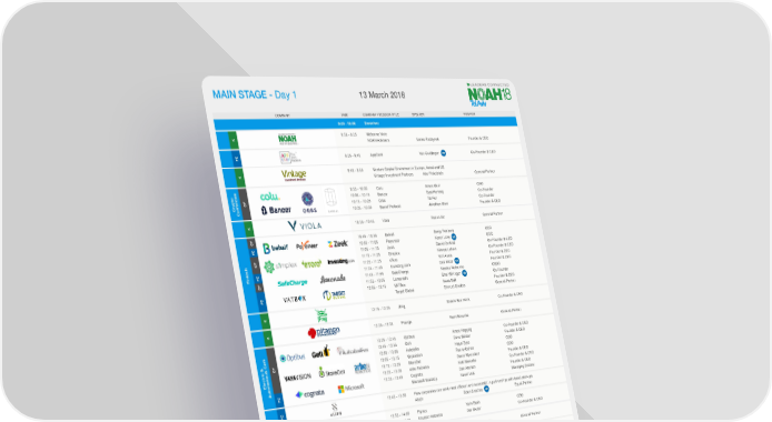 MAIN STAGE - Day 1 13 March 2018 COMPANY TIME COMPANY / SESSION TITLE SPEAKER POSITION 9:00 - 10:00 Breakfast 9:30 - 9:35 Welcome Note K NOAH Advisors Marco Rodzynek Founder & CEO ® FC 9:35 - 9:45 AppCard Yair Goldfinger MR Co-Founder & CEO K 9:45 - 9:55 Venture Capital Enviroment in Europe, Israel and US Vintage Investment Partners Abe Finkelstein General Partner 9:55 - 10:05 Colu Amos Meiri CEO CP 10:05 - 10:15 Bancor Eyal Hertzog Co-Founder Crypto 10:15 - 10:25 Orbs Tal Kol Co-Founder Currencies 10:25 - 10:35 Barrel Protocol Jonathan Meiri Founder & CEO K 10:35 - 10:45 Viola Ronen Nir General Partner CP 10:45 - 10:55 Behalf Benjy Feinberg CEO FC 10:55 - 11:05 Payoneer Keren Levy MR COO 11:05 - 11:15 Zeek Daniel Zelkind Co-Founder & CEO CP 11:15 - 11:25 Simplex Nimrod Lehavi Co-Founder & CEO 11:25 - 11:35 eToro Yoni Assia Founder & CEO Fintech FC 11:35 - 11:45 Investing.com Dror Efrat MR Founder & CEO CP 11:45 - 11:55 SafeCharge Nicolas Vedrenne CBDO 11:55 - 12:05 Lemonade Shai Wininger MR Co-Founder FC 12:05 - 12:15 VATBox Isaac Saft Founder & CEO Target Global Shmuel Chafets General Partner K 12:15 - 12:25 Jfrog Shlomi Ben Haim Co-Founder & CEO K 12:25 - 12:35 Pitango Rami Beracha General Partner 12:35 - 12:45 Optibus Amos Haggiag Co-Founder & CEO 12:45 - 12:55 Gett Dave Waiser Founder & CEO CP 12:55 - 13:05 Autotalks Hagai Zyss CEO 13:05 - 13:15 Vayavision Ronny Cohen CEO Electric & 13:15 - 13:25 StoreDot Doron Myersdorf Founder & CEO 13:25 - 13:35 Arbe Robotics Kobi Marenko Co-Founder & CEO Autonomous CarsFC 13:35 - 13:45 Cognata Dan Atsmon Founder & CEO Microsoft ScaleUp Navot Volk Managing Director FC 13:45 - 13:55 How corporates can work most efficient and successful in partnerships with Israel start-ups Aleph Eden Shochat MR Equal Partner CP 13:55 - 14:05 Flytrex Yariv Bash CEO Robotics& Drones 14:05 - 14:15 Intuition Robotics Dor Skuler Co-Founder & CEO K 14:15 - 14:25 Lakestar Dharmash Mistry General Partner 14:25 - 14:35 SimilarWeb Or Offer Co-Founder & CEO 14:35 - 14:45 Luminati Ofer Vilenski Co-Founder & CEO 14:45 - 14:55 Panoply.io Yaniv Leven Co-Founder & CEO 14:55 - 15:05 Elastifile Amir Aharoni Co-Founder & CEO 15:05 - 15:15 Datorama Ran Sarig CEO 15:15 - 15:25 INFINIDAT Eran Brown CTO, EMEA AnalyticsCP 15:25 - 15:35 SimilarTech Chen Levanon Co-Founder & CEO 15:35 - 15:45 Kaminario Dani Golan Founder & CEO 15:45 - 15:55 Clicktale Liraz Margalit Head of Digital Behavioral Research Big Data & 15:55 - 16:05 Somatix Eran Ofir Co-Founder & CEO 16:05 - 16:15 Windward Ami Daniel Co-Founder & CEO 16:15 - 16:25 Feedvisor Victor Rosenman CEO 16:25 - 16:35 Redis Labs Yiftach Shoolman Co-Founder & CTO 16:35 - 16:45 Cellwize Ofir Zemer CEO FC 16:45 - 16:55 AppsFlyer Oren Kaniel MR Co-Founder & CEO 16:55 - 17:05 MyHeritage Gilad Japhet Founder & CEO 17:05 - 17:15 Wix.com Reuven J. Sherwin VP Product 17:15 - 17:25 TIPA Daphna Nissenbaum Co-Founder & CEO 17:25 - 17:35 SeekingAlpha Eli Hoffmann CEO & Editor-in-Chief CP 17:35 - 17:45 Wizer.Me Nira Mayorchik Sheleg Co-Founder & CEO User Paid & B2B Services 17:45 - 17:55 Missbeez Gil Bouhnick Co-Founder & CTO 17:55 - 18:05 Bringg Raanan Cohen Co-Founder & CEO 18:05 - 18:15 Stratoscale Ariel Maislos Founder & CEO 18:15 - 18:25 Stargo Joel Sellam Founder & CEO 18:25 - 18:35 hibob Ronni Zehavi Co-Founder & CEO K 18:35 - 18:40 Closing Note ® NOAH Advisors Marco Rodzynek Founder & CEO 18:40 Networking Reception Lunch served between 12:30 - 14:30 CP Company Presentation K Keynote FC Fireside Chat MR Interview / Panel with participation of Marco Rodzynek Founder & CEO, NOAH Advisors 2