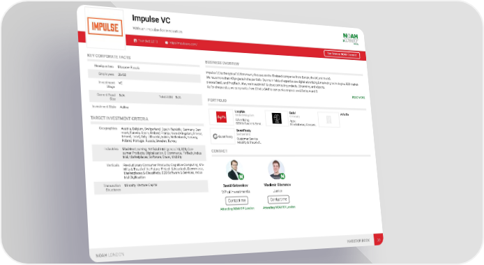 Impulse VC With an impulse for innovation Founded: 2013 http://impulsevc.com/ See More at NOAH Connect KEY CORPORATE FACTS BUSINESS OVERVIEW Headquarters Moscow, Russia Impulse VC is the typical VC firm mainly focuses on the IT-related companies from Europe, the UK, and the US. We have more than 40 projects in the portfolio. Our main fields of expertise are digital advertising & marketing technologies, B2B-market- Employees 26-50 places/SaaS, and PropTech. Also, we invest in IoT & cloud computing projects, 3D-printing, and eSports. Investment VC As for cheque size, we can provide from $1M to $4M to companies on post-seed, Series A and B. Stage READ MORE Current Fund N/A Total AUM N/A PORTFOLIO Size Investment Style Active LoopMe Endel Adludio United Kingdom Germany Advertising Apps TARGET INVESTMENT CRITERIA B2B Software & Servi… Revolutionary Consum… Geographies Austria, Belgium, Switzerland, Czech Republic, Germany, Den- GuestReady mark, Estonia, Spain, Finland, France, United Kingdom, Greece, Switzerland Ireland, Israel, Italy, Lithuania, Latvia, Netherlands, Norway, Customer Service Poland, Portugal, Russia, Sweden, Turkey Mobility & Travel of… Industries Machine Learning, Artificial Intelligence / AI, B2B, Con- CONTACT sumer Products, Digitalisation, E-Commerce, FinTech, Indus- trial, Marketplaces, Software, Travel, Mobility Verticals Revolutionary Consumer Products, Cognitive Computing, Mo- bility & Travel of the Future, Fintech & Insurtech, Ecommerce, Marketplaces & Classifieds, B2B Software & Services, Indus- trial Digitisation Transaction Minority, Venture Capital Daniil Grizenkov Vladimir Glazunov Structures VP of Investments Junior Contact me Contact me Attending NOAH19 London Attending NOAH19 London NOAH LONDON INVESTOR BOOK 30