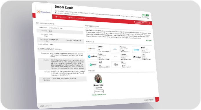 Draper Esprit Our mission? Empower Europe to invent the future. Success depends on genuine collaboration, so when we meet teams that share our way of thinking, we back them all the way Founded: 2006 http://www.draperesprit.com See More at NOAH Connect KEY CORPORATE FACTS BUSINESS OVERVIEW Headquarters London, United Kingdom Draper Esprit is one of the most active venture capital firms in Europe, helping to build and invest in disruptive, high growth technology companies. We believe the best entrepreneurs in Europe are capable of building the global businesses of the future. We fuel their growth with long- term Employees 26-50 capital, access to international networks and decades of experience building businesses. We are the European arm of the Draper Venture Investment Growth Network, a global venture capital alliance, giving our portfolio access to a global footprint of corporates and investors. Stage READ MORE Current Fund € 899,200,000m Total AUM € 899,200,000m PORTFOLIO Size Investment Style Active Trustpilot Transferwise Revolut Denmark United Kingdom United Kingdom B2B Banking FinTech TARGET INVESTMENT CRITERIA Ecommerce, Marketpla… Fintech & Insurtech Fintech & Insurtech Geographies Austria, Belgium, Switzerland, Germany, Denmark, Spain, Fin- Perkbox Graphcore Ledger land, France, United Kingdom, Ireland, Netherlands, Portugal, United Kingdom United Kingdom France Sweden B2B Hardware Blockchain B2B Software & Servi… B2B Software & Servi… Fintech & Insurtech Industries Biotechnology, PaaS, Cryptocurrencies, SpaceTech, Engineer- ing, Machine Learning, Deep Learning, Semiconductors, B2B, Aircall N26 B2C, Banking, Blockchain, Cyber Security, Digital Health, France Germany E-Commerce, EduTech, FinTech, InsurTech, PropTech, Soft- B2B FinTech ware, Venture Capital, Mobility, SaaS, Cloud, Cloud Services, B2B Software & Servi… Fintech & Insurtech Consumer Electronics, Data, Enterprise Hardware, Hardware,… CONTACT Verticals Digital Health, Mobility & Travel of the Future, Edutech, Fintech & Insurtech, B2B Software & Services, Blockchain-Powered Businesses, Industrial Digitisation Transaction Growth Capital, Venture Capital, Active Style Structures Eleonore Butler Associate Contact me Attending NOAH19 London NOAH LONDON INVESTOR BOOK 14