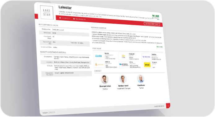 Lakestar Lakestar is one of Europe's leading venture capital firms. Early investments included Skype, Spotify, Facebook and airbnb. Since raising a first fund in 2013, Lakestar manages an aggregate volume of EUR 1bn. Founded: 2013 http://lakestar.com See More at NOAH Connect KEY CORPORATE FACTS BUSINESS OVERVIEW Headquarters Zurich, Switzerland Lakestar is a global venture capital company, with offices in Zurich, Berlin, and London. • Company identified highly disruptive technology companies across all stages of their lifestyle – seed to growth – and across consumer and Employees 26-50 B2B business models. Most importantly, Lakestar has been a preferred partner for US Investment VC entrepreneurs considering international expansion, as well as European entrepreneurs wanting to go global. Stage • Lakestar has invested in Skype, Spotify, Harry's, Facebook, Airbnb, King.com, and more recently into Omio, Oscar, Opendoor, Hometogo, Get your Guide and Revolut. Current Fund N/A Total AUM € 1,000m READ MORE Size Investment Style Active PORTFOLIO TARGET INVESTMENT CRITERIA Revolut CrossLend Teralytics United Kingdom Germany Switzerland FinTech FinTech Data Science Geographies Germany, Spain, France, United Kingdom, Israel, Netherlands, Fintech & Insurtech Fintech & Insurtech Mobility & Travel of… Sweden Auterion Avrios Amuse.io Industries FinTech, Software, Travel, Media, Real Estate, Transportation Switzerland Switzerland Sweden B2B Artificial Intellige… Verticals Revolutionary Consumer Products, Digital Health, Mobility & B2B Software & Servi… B2B Software & Servi… Apps Travel of the Future, Fintech & Insurtech, B2B Software & Ser- vices CONTACT Transaction Growth Capital, Venture Capital Structures Christoph Schuh Mathias Haniel Gilad Novik Partner Investment Manager Partner NOAH LONDON INVESTOR BOOK 34