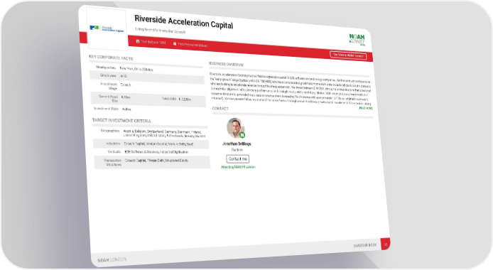 Riverside Acceleration Capital Long-term Partners for Growth Founded: pre-1990 http://www.riverside.ac See More at NOAH Connect KEY CORPORATE FACTS BUSINESS OVERVIEW Headquarters New York, United States Riverside Acceleration Capital provides flexible expansion capital to B2B software and technology companies. We first work with companies at the “early-growth” stage (typically with $3-15M ARR), who have demonstrated growth and momentum under a capital efficient cost structure, and Employees 4-10 who are looking to accelerate revenue through business expansion. We invest between $1M-$5M , through a unique structure that is designed Investment Growth to maximize alignment with company performance and strategic needs, while minimizing dilution. With this model, our primary method of Stage repayment/return is generated via a capped revenue share (averaging 5% of revenue until approximately 1.6-1.8x our original investment is returned). We can provide follow-on capital of the same form or through a more traditional growth capital investment in future rounds. Along… Current Fund € 45m Total AUM € 7,200m READ MORE Size CONTACT Investment Style Active TARGET INVESTMENT CRITERIA Geographies Austria, Belgium, Switzerland, Germany, Denmark, Finland, United Kingdom, Ireland, Israel, Netherlands, Norway, Sweden Jonathan Drillings Industries Growth Capital, Venture Capital, Venture Debt, SaaS Partner Verticals B2B Software & Services, Industrial Digitisation Contact me Transaction Growth Capital, Private Debt, Structured Equity Structures Attending NOAH19 London NOAH LONDON INVESTOR BOOK 46