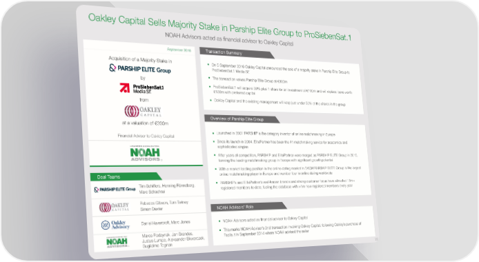 Oakley Capital Sells Majority Stake in Parship Elite Group to ProSiebenSat.1 Case Study
