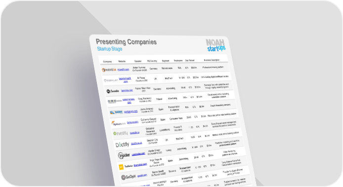 Presenting Companies Startup Stage Company Website Speaker HQCountry Segment Employees Cap. Raised Business Description move24.com Anton Rummel Germany Marketplaces N/A CR: $36.0m Professional moving platform Co-Founder & CEO babylonhealth Ali Parsa UK MedTech 101-200 CR: $25.0m .com Founder & CEO UK’s leading digital healthcare service fanmiles.com Fabian Maximilian Germany Advertising 26-50 CR: $10.0m Connects fans with celebrities and CEO through loyalty reward programs salesmanago. Greg Blazewicz Poland Advertising 200+ CR: $10.0m Cloud-based online marketing com Founder & CEO automation platform icontainers.com Jaime Jimenez Spain Transportation N/A CR: $8.3m Freight forwarding company Founder& CEO & Logistics byhours.com Guillermo Gaspart Spain Consumer Apps 26-50 CR: $4.6m Micro-stay online hotel booking platform Co-Founder & CEO Sebastian Finance & Consulting and asset management investify.lu Hasenack Luxembourg Insurance 11-25 CR: $4.5m services focused on investments Founder & MD doctify.co.uk Stephan Eltz UK MedTech 10-25 CR: $4.4m Medical visits online booking platform Co-Founder useinsider.com HandeCilingir Turkey Advertising 101-200 CR: $3.0m Predictive modelling and real-time Co-Founder & CEO personalization platform Inigo Vega de Video Rendering themotion.com Seone Spain Advertising 26-50 CR: $3.0m platform as a Service Co-Founder & CEO goopti.com Marko Gucek Slovenia Transportation 51-100 CR: $2.9m Long distance hub-to-hub Co-Founder & CEO & Logistics transportation marketplace evopark.com Sven Lackinger Germany Transportation 10-25 CR: $2.3m Provider for digital off-street Founder & Logistics parking in Europe carjump.me Fabian Kofler Germany Transportation 26-50 CR: $2.2m Enables to search for, reserve CEO & Logistics and book car sharing vehicles leanix.net Andre Christ Germany Business 10-25 CR: $2.2m SaaS-platform for Co-Founder & CEO Services IT architecture of enterprises labfolder.com Simon Bungers Germany Business 10-25 CR: $2.0m Operation system for laboratories CEO Services medlanes.com Emil Kendziorra Germany MedTech 10-25 CR: $2.0m Medical advice on-demand app Co-Founder & CEO playcodemonkey. Yishai Pinchover Israel Gaming 4-10 CR: $2.0m Gaming studio com Co-Founder & VP eversports.com Hanno Lippitsch Austria Business 26-50 CR: $1.8m SaaS enabled marketplace Co-Founder & CEO Services for sport activities buzzmyvideos. Paola Marinone UK Advertising 26-50 CR: $1.7m Creates, curates, distributes and com Co-Founder & CEO monetises online video roq.ad Carsten Frien Germany Advertising 10-25 CR: $1.7m Cross-service advertising tool Co-Founder & CEO Alexander Instant delivery service getnow.de Emming Germany E-commerce 26-50 CR: $1.5m for daily private purchases Founder & CEO parlamind.com Christian Wolf Germany Business 10-25 CR: $1.5m AI platform for customer service CEO Services 8